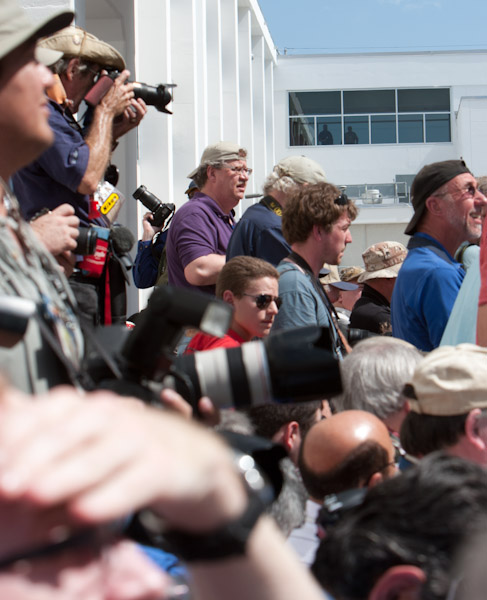 First off, though, I am not going to explain how to get credentialed. I am not trying to keep this exclusive because it isn’t by any stretch of the imagination. I just don’t want to be dropped off in a swamp somewhere by the overworked KSC Media Services staff that with dealt with 1200 credential requests for STS-134. If you are a professional photographer you will know what to do to get credentialed. If you plan on being a fanboy by waving to the astronauts and being generally an idiot, don’t bother. You will inevitably incur the wrath of the photographers around you whose shot you just ruined.